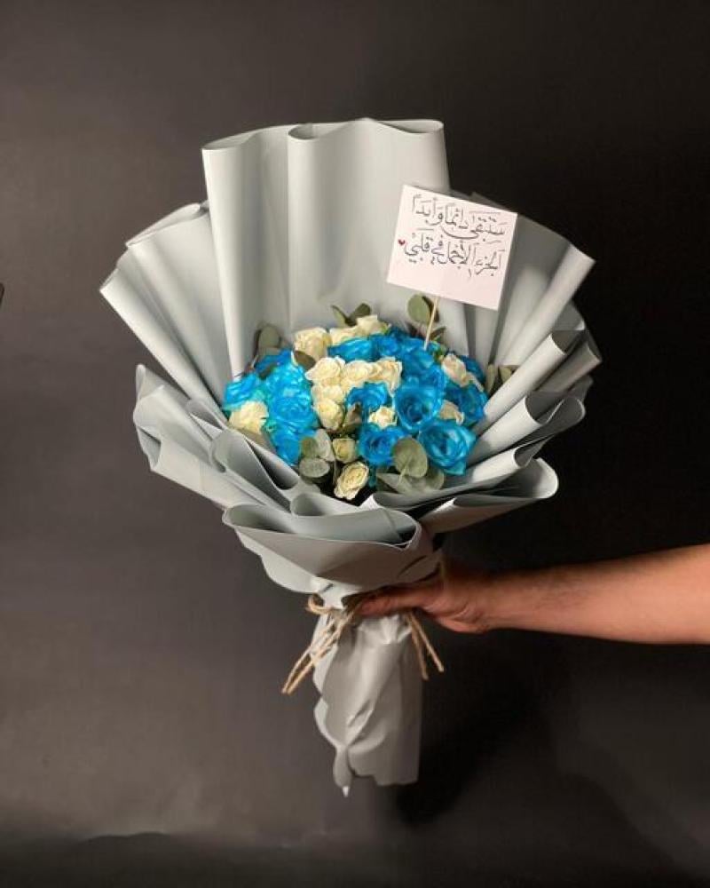 هدية باقة ورد أبيض مع سماوي هي الخيار الأمثل لجعل لحظاتكم الخاصة أكثر تميزًا. اجعلوا كل مناسبة فريدة مع هذه الباقة الرائعة التي تعكس الجمال والأناقة!